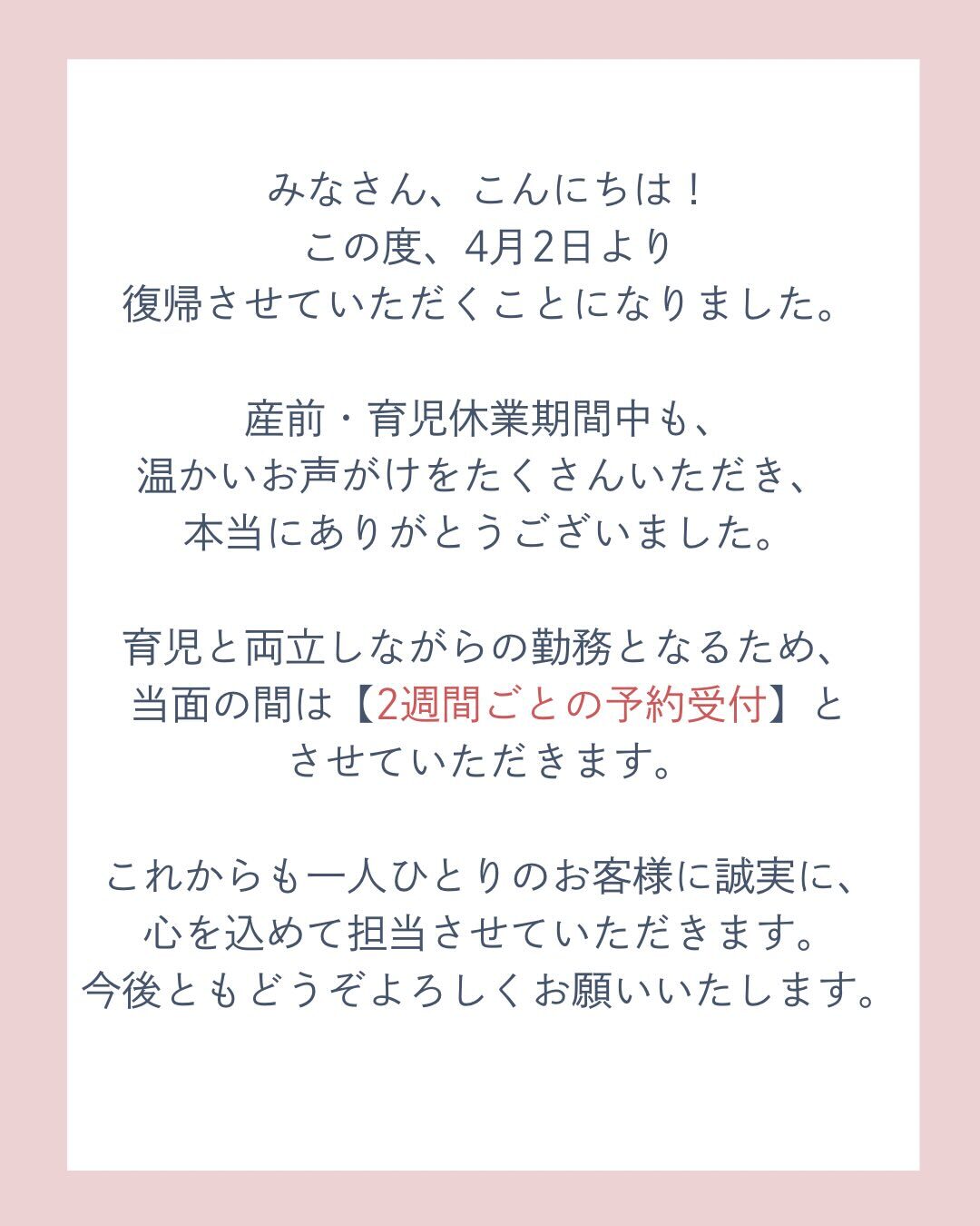 /復帰のご挨拶*・