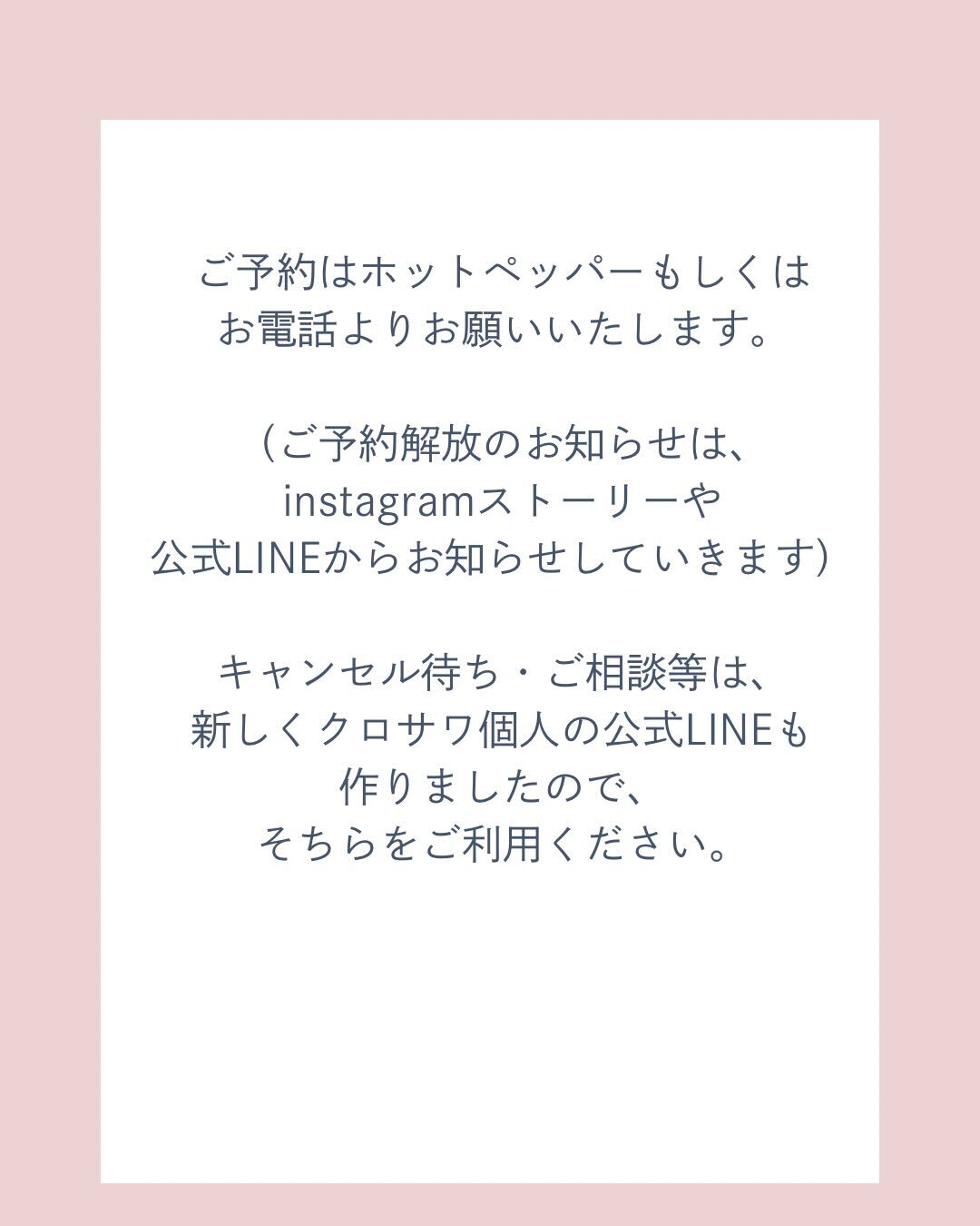 当面の間は2週間ごとの予約受付となります。